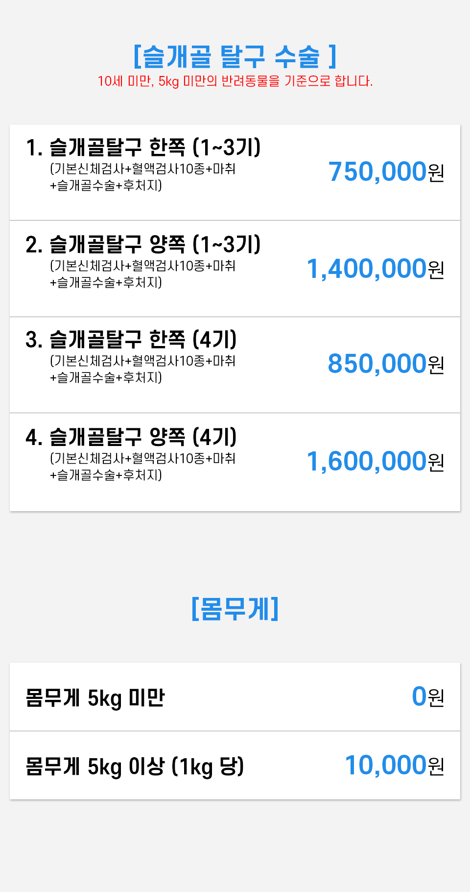 게시된 가격과 프로세스는 일반적인 상태의 반려동물 기준으로 안내된 내용이며,